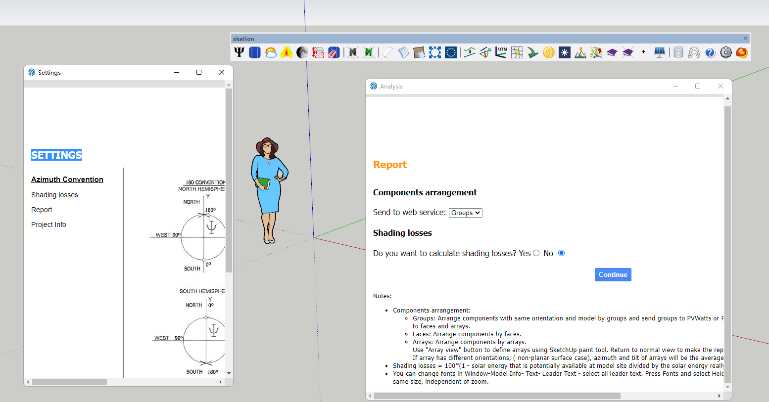 除了强大的计算能力,Skelion还实现了与NREL的PV计算器及European JRC系统的无缝对接,帮助生成详尽的PV能源报告,为项目的可持续性提供有力证据。同时,它还支持与PVWATTS V1和V2版本,以及PVGIS系统的兼容,确保了跨平台操作的便利性。