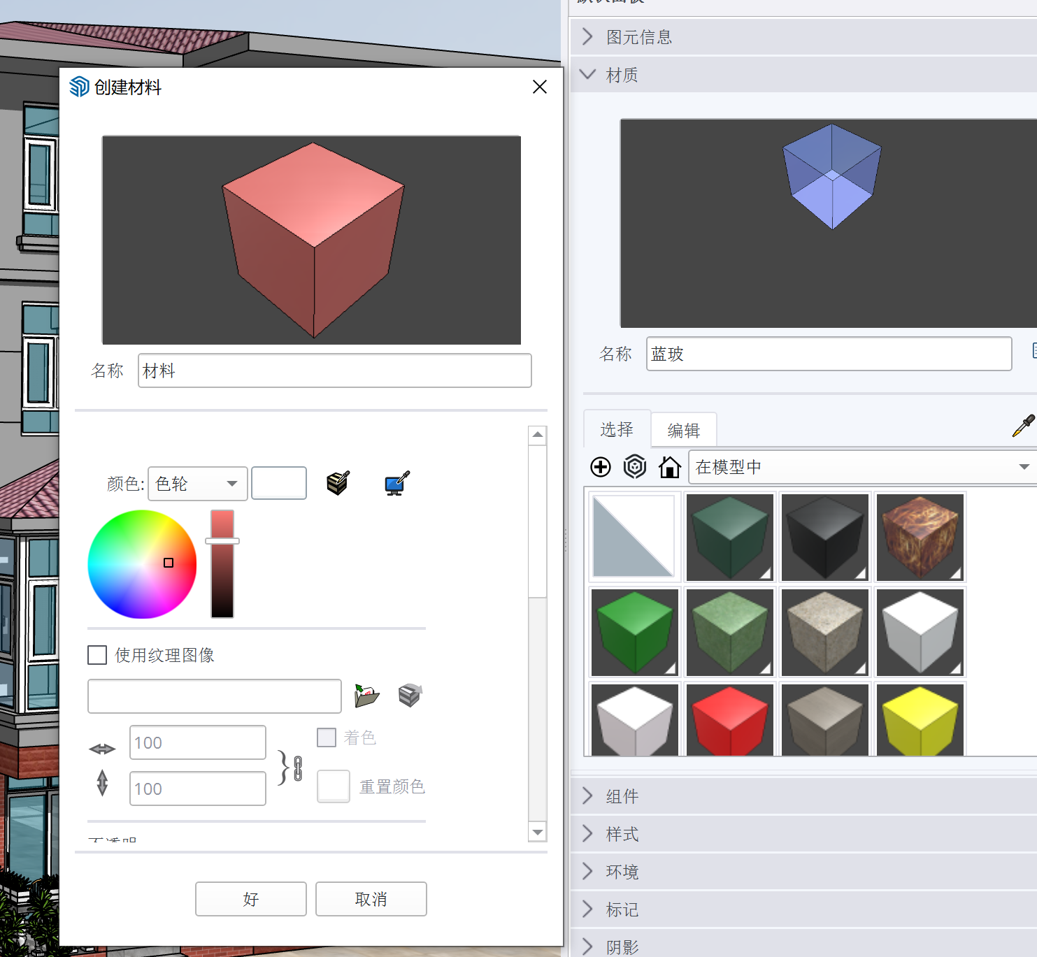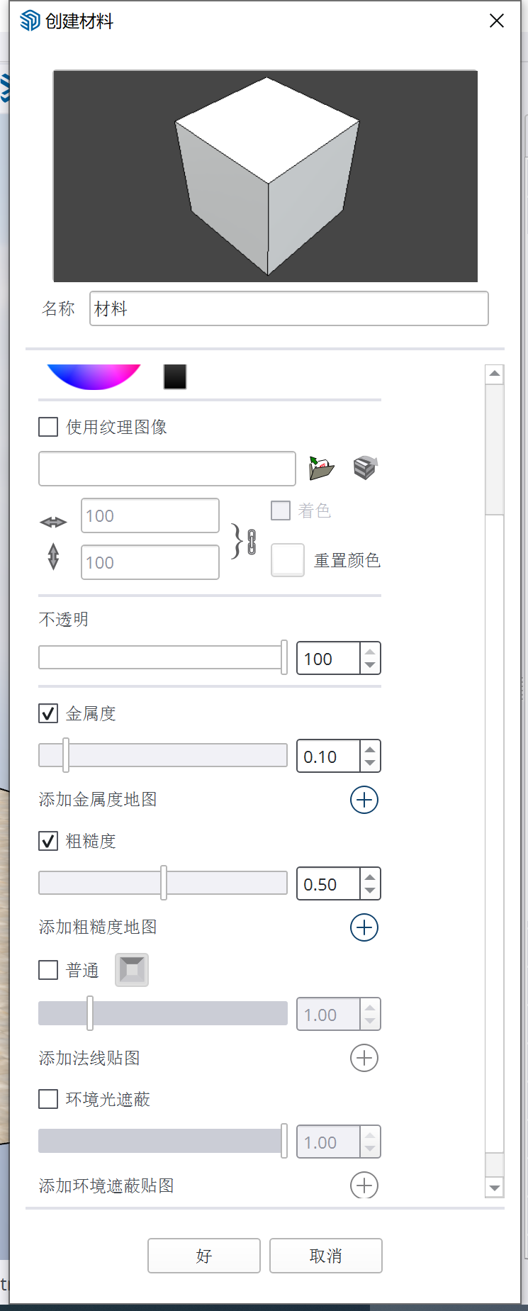 1、材质面板增加了多个属性选项,预览变成了盒子预览
