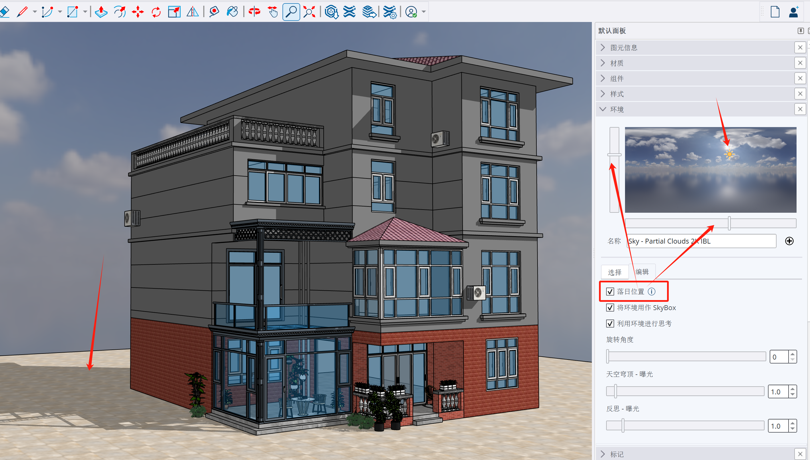 2、增加了环境面板,支持hdr,可修改太阳位置,可旋转、调亮度