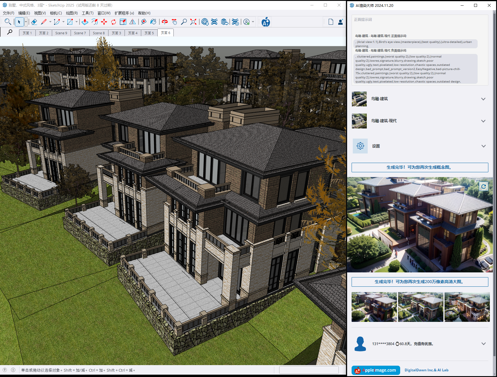 无需您写任何“关键词”,一切交给我们,一键同步SketchUp场景,为您输出灵感无限!