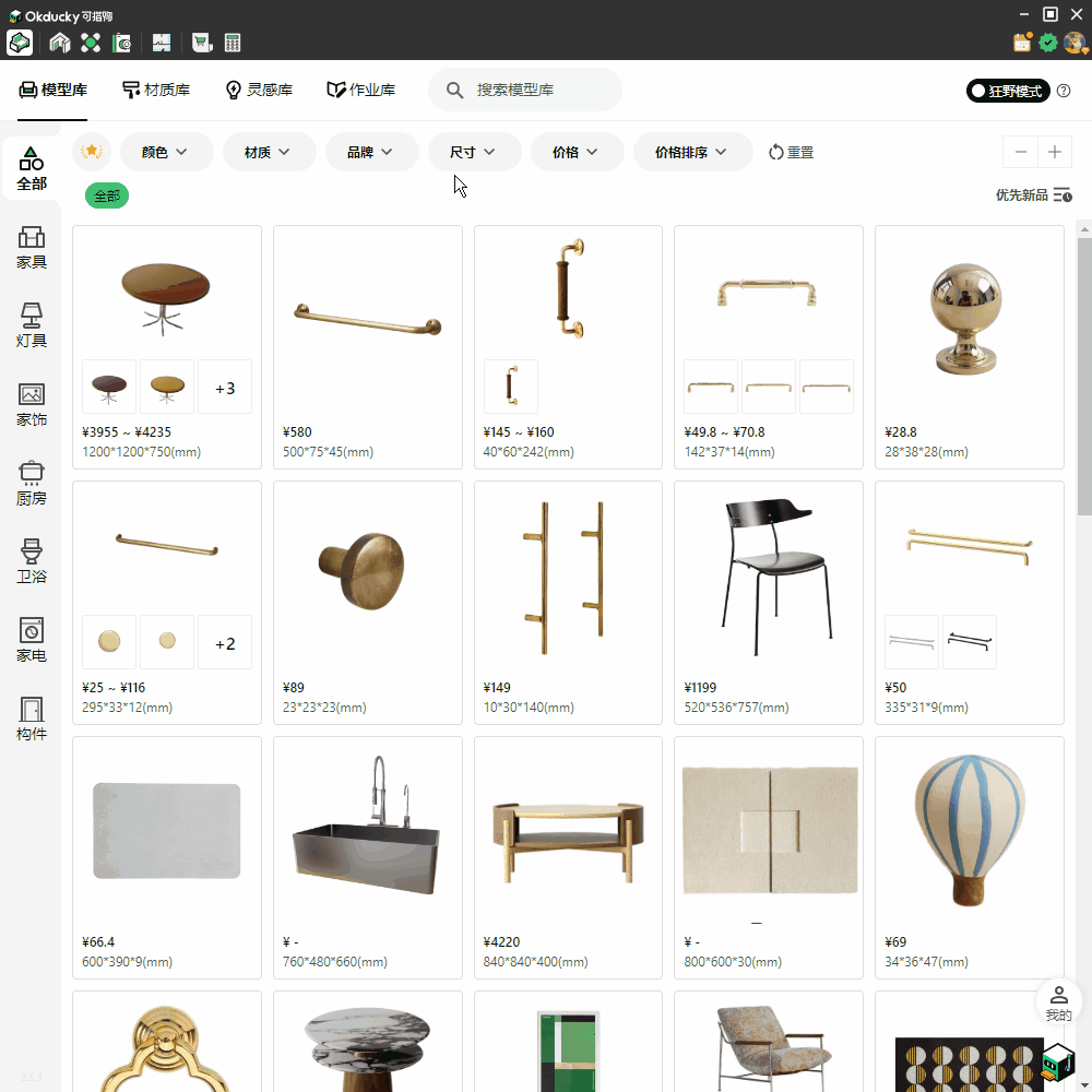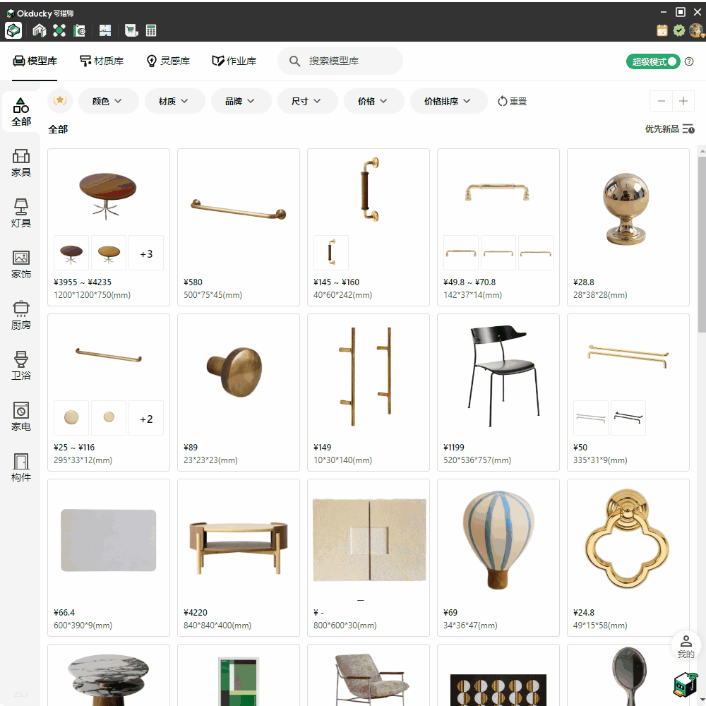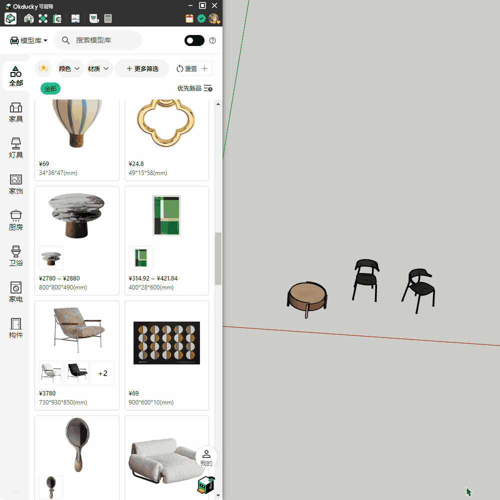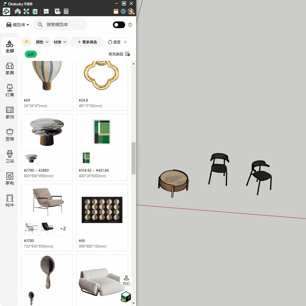 可搭鸭目前已有超过 3W+ 室内软装模型材质,一键加载,即刻使用。