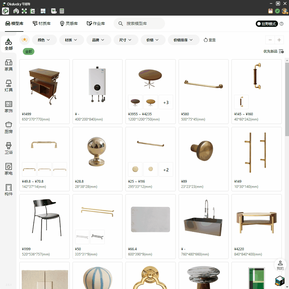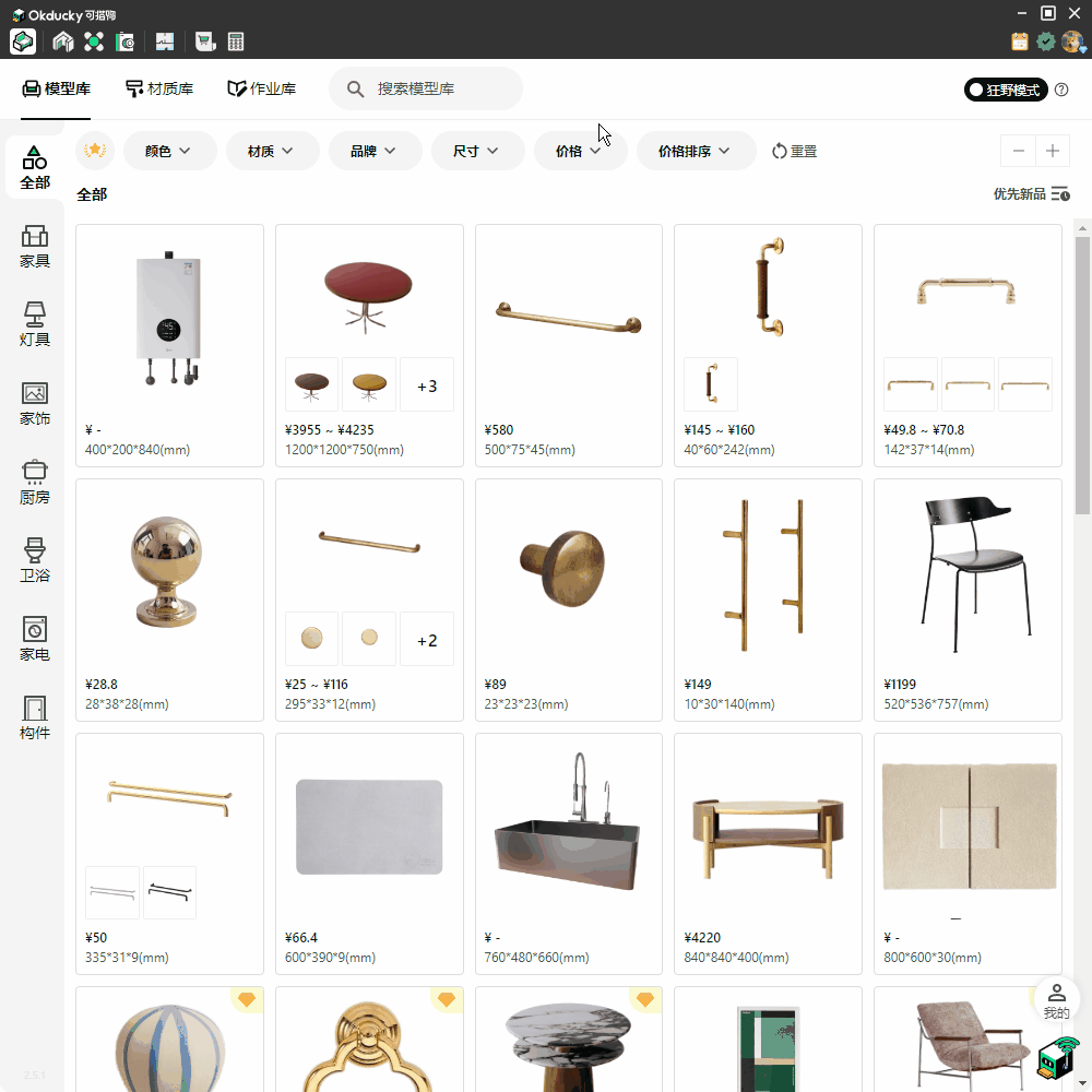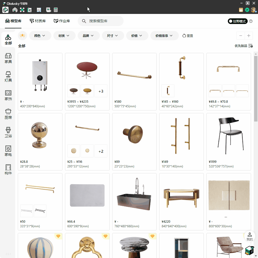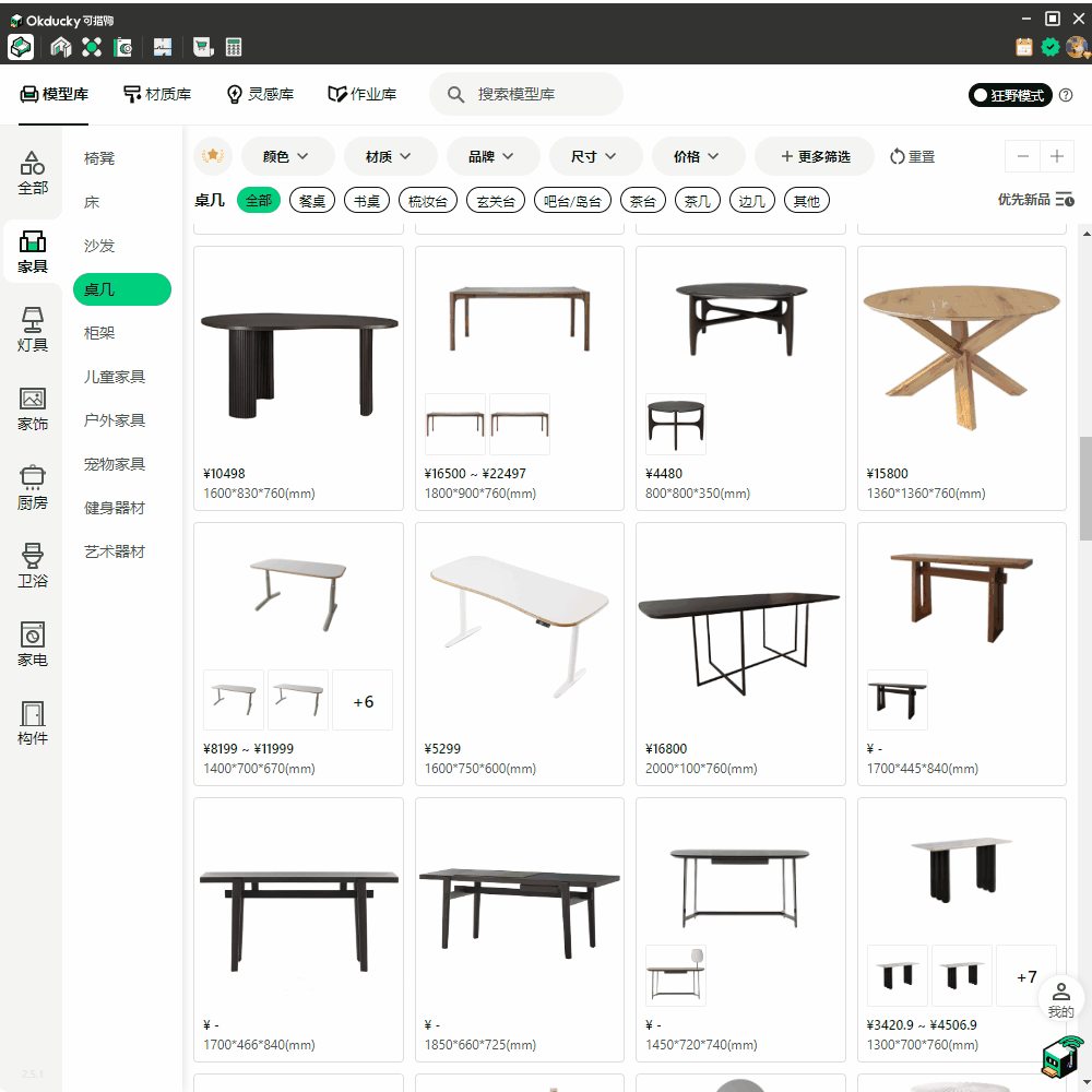 可搭鸭目前已有超过 3W+ 室内软装模型材质,一键加载,即刻使用。