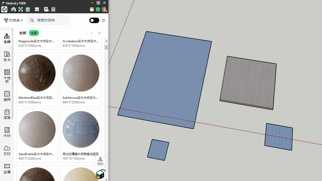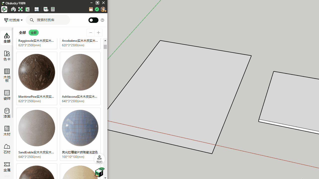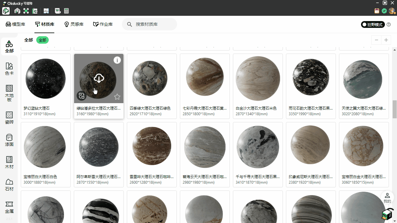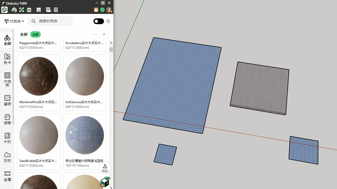 点击任意材质,即可一键加载至场景内的当前材质栏,并且触发油漆桶工具。