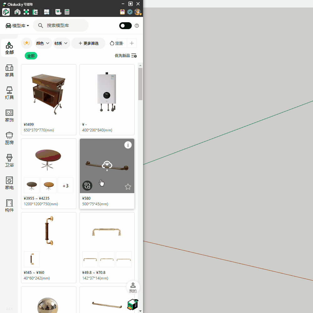 在场景里选择任意物体,右键-索引商品,将在可搭鸭里显示对应素材。