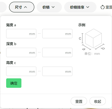 可以输入任意尺寸范围,也可只输入最小值或最大值,点击