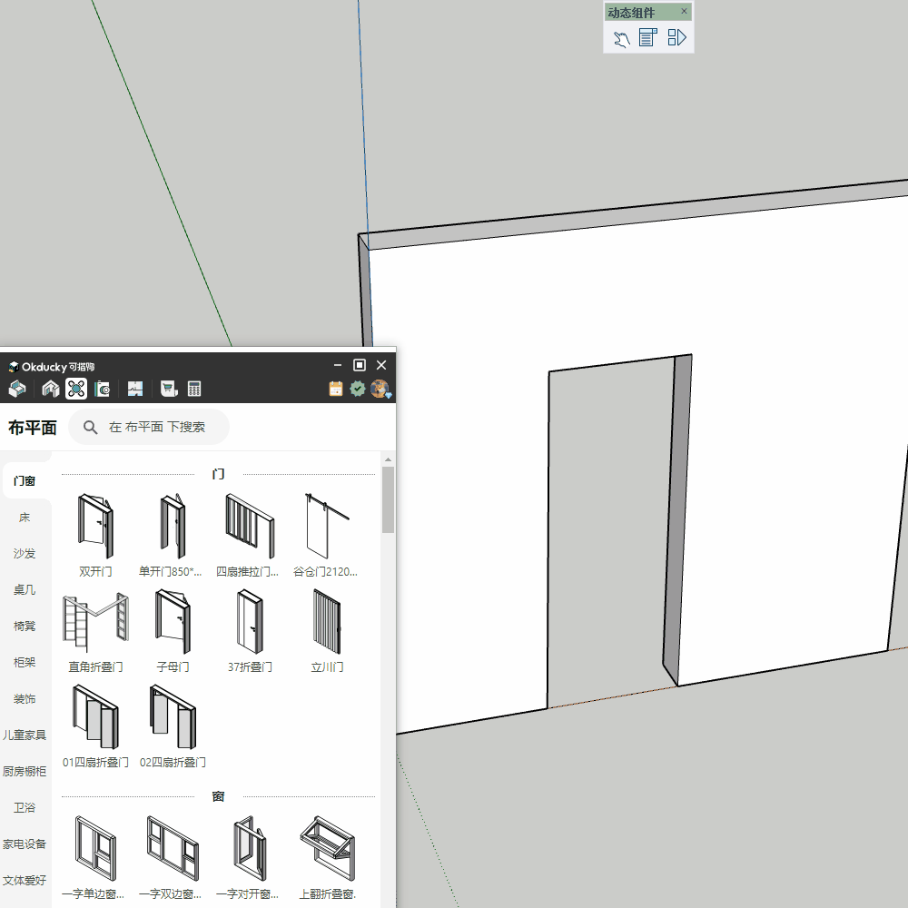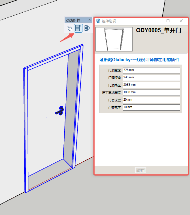 动态组件是Sketchup内嵌的一个插件,通过对组件进行一系列参数设置,使其具有可互动,参数化的功能。