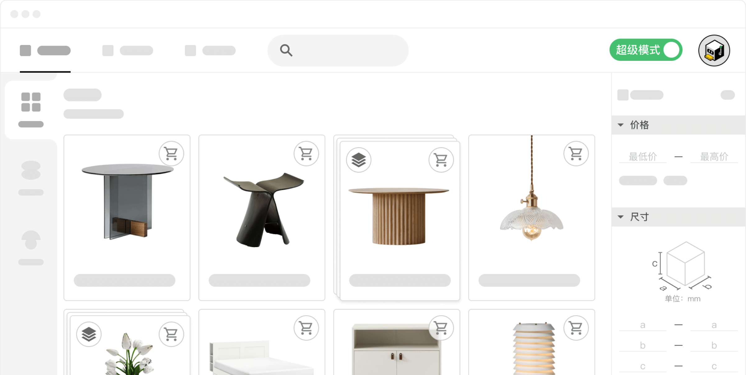 这是一个开关项,默认为狂野模式,当开启为超级模式后,素材池将只显示有可购价格,可在现实买到的家具素材。