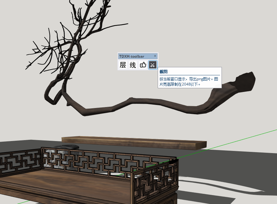 工具栏显示的是剪刀图标。 按当前窗口显示,导出png图片。图片宽高限制在2048以下。