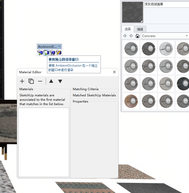AmbientOcclusion有四种操作模式:”渲染视口”、”渲染窗口”、”渲染动画”(仅限Ex版本)、”批量渲染”,可通过扩展菜单访问,部分可通过AmbientOcclusion工具栏访问。