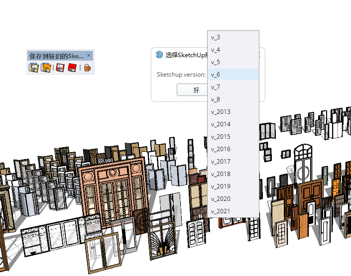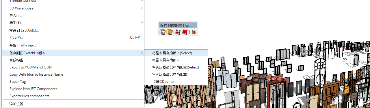 同时在SketchUp的主文件菜单上新增加了“保存到旧版本的SketchUp模型的”快捷功能。