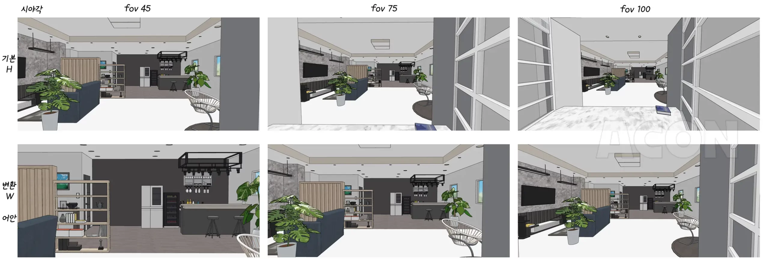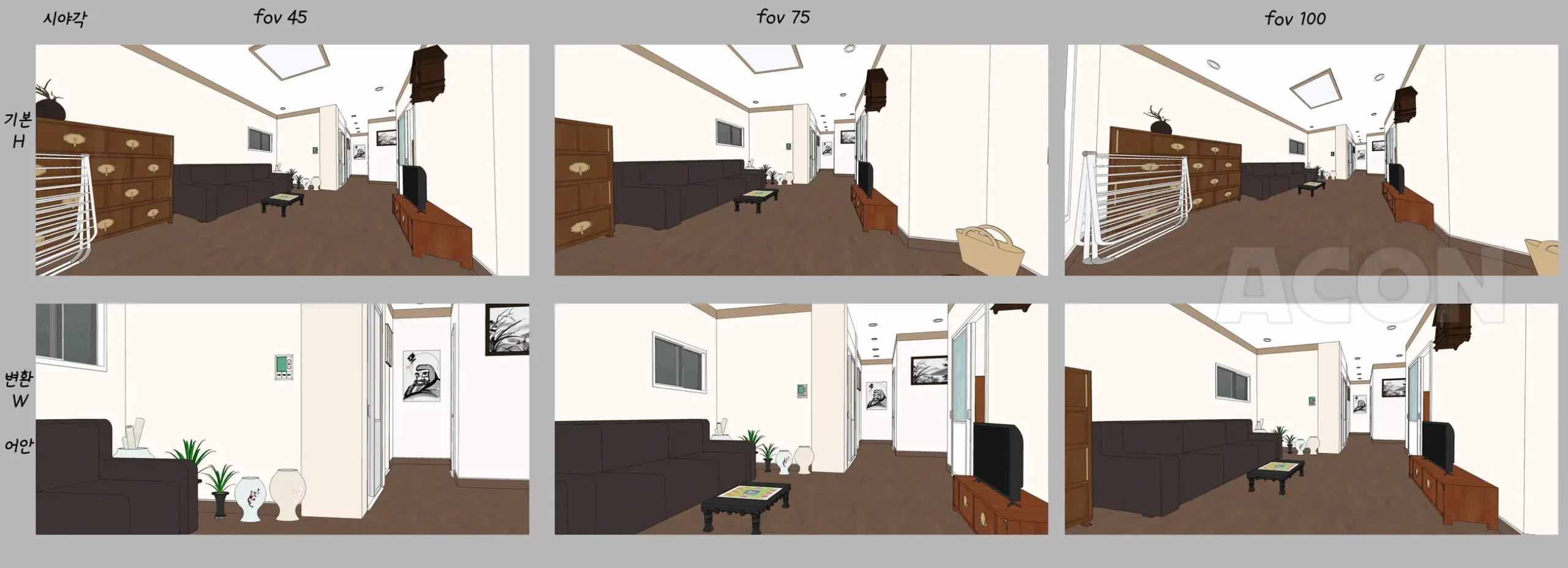 以上三张是素描业基本提供的视角(FOV,视角),分别为45度、75度、100度。