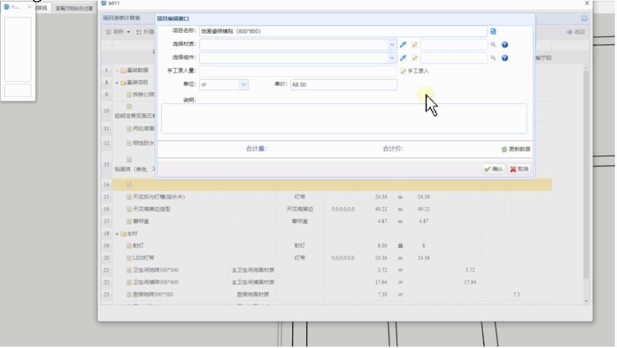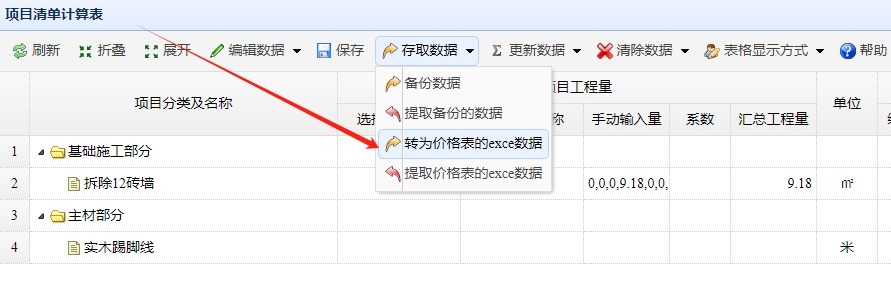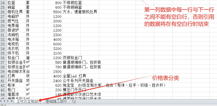 2、价格表也可以和项目表格的价格数据进行交互。如图所示: