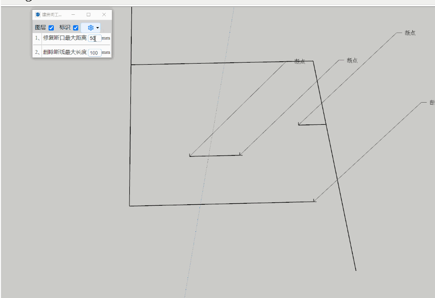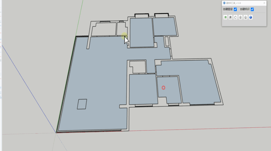 1、导入cad平面图,用点击建面工具绘制出需要的平面图模型,注意:房间门洞宽度是根据门口的过门平面来确定的,这个面也需要建立;另外,在点击平面图时,系统会清理CAD图,进行图层及材质归零处理。如图所示