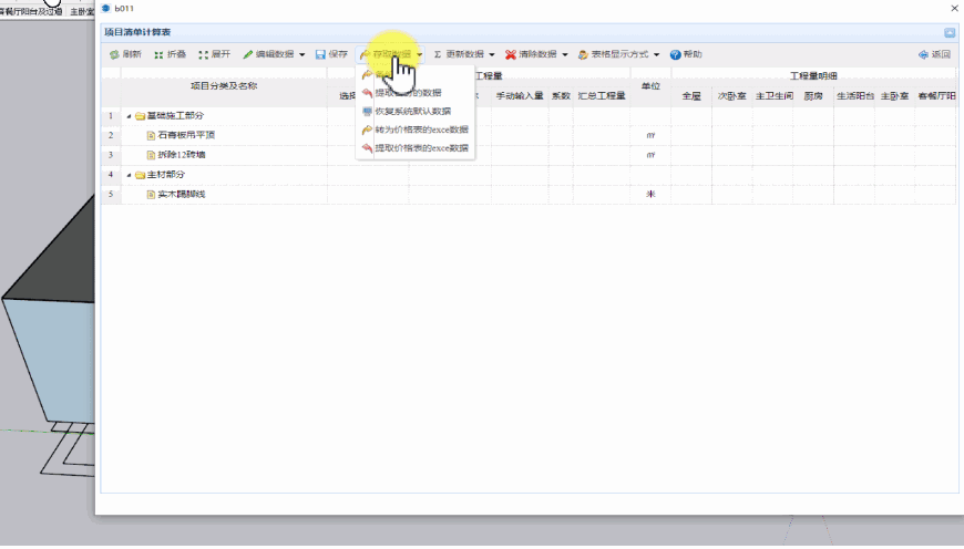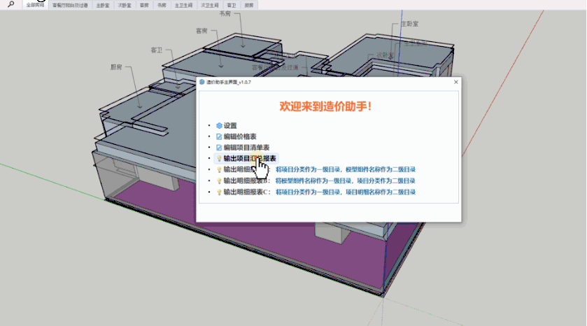 本插件可以在短短几分钟内将一张CAD平面图从建模到预算造价表一气呵成。