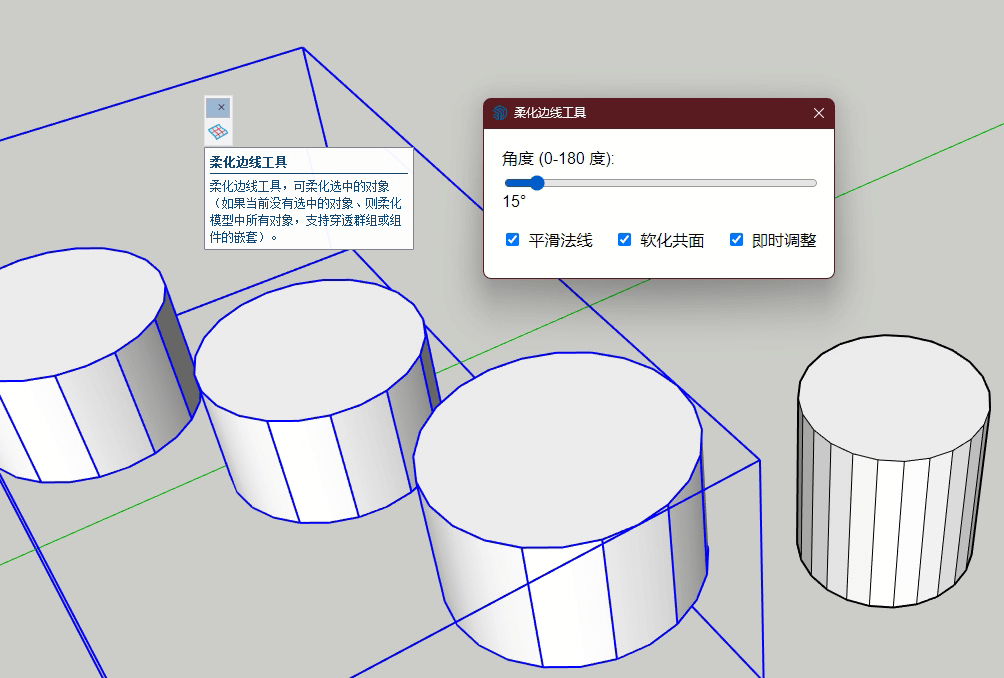 SketchUp的边线柔化工具,自带的柔化功能不支持嵌套的群组或组件,这个可以柔化嵌套的群组或组件。