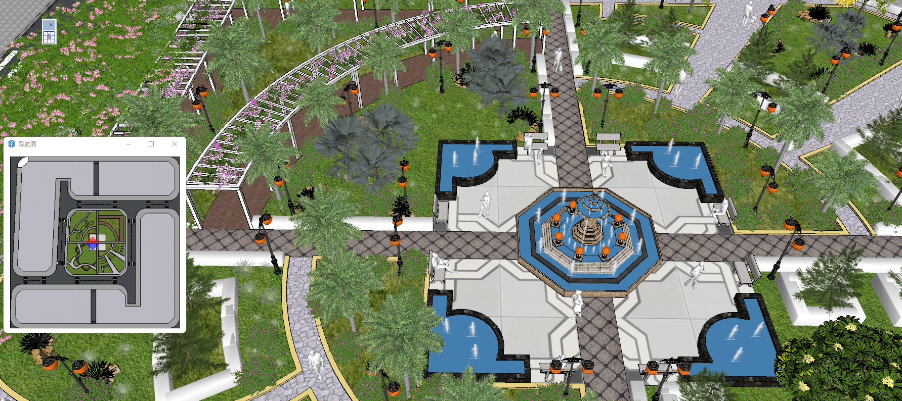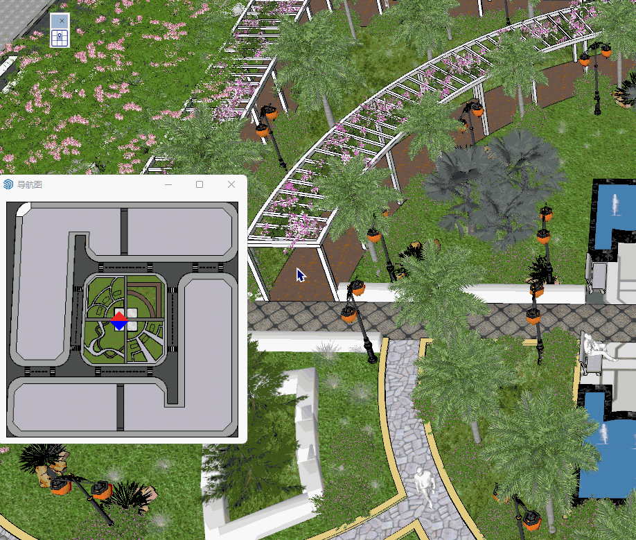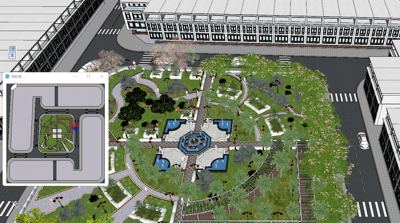 本工具针对SketchUp模型场景大的尤其是规划景观和BIM类设计模型方案的比较实用,可以根据当前页面鼠标演示模型的操作,相应的小地图中可以显示相对的导航位置;让您的方案演示更生动同时也可以在大模型中的区域“不迷路”。