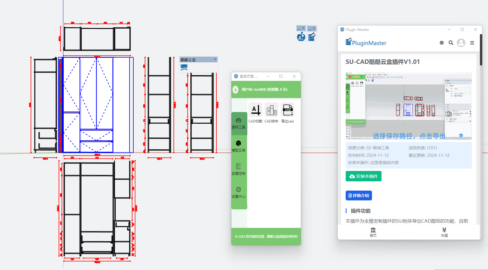本插件为全屋定制插件的SU柜体导出CAD图纸的功能。