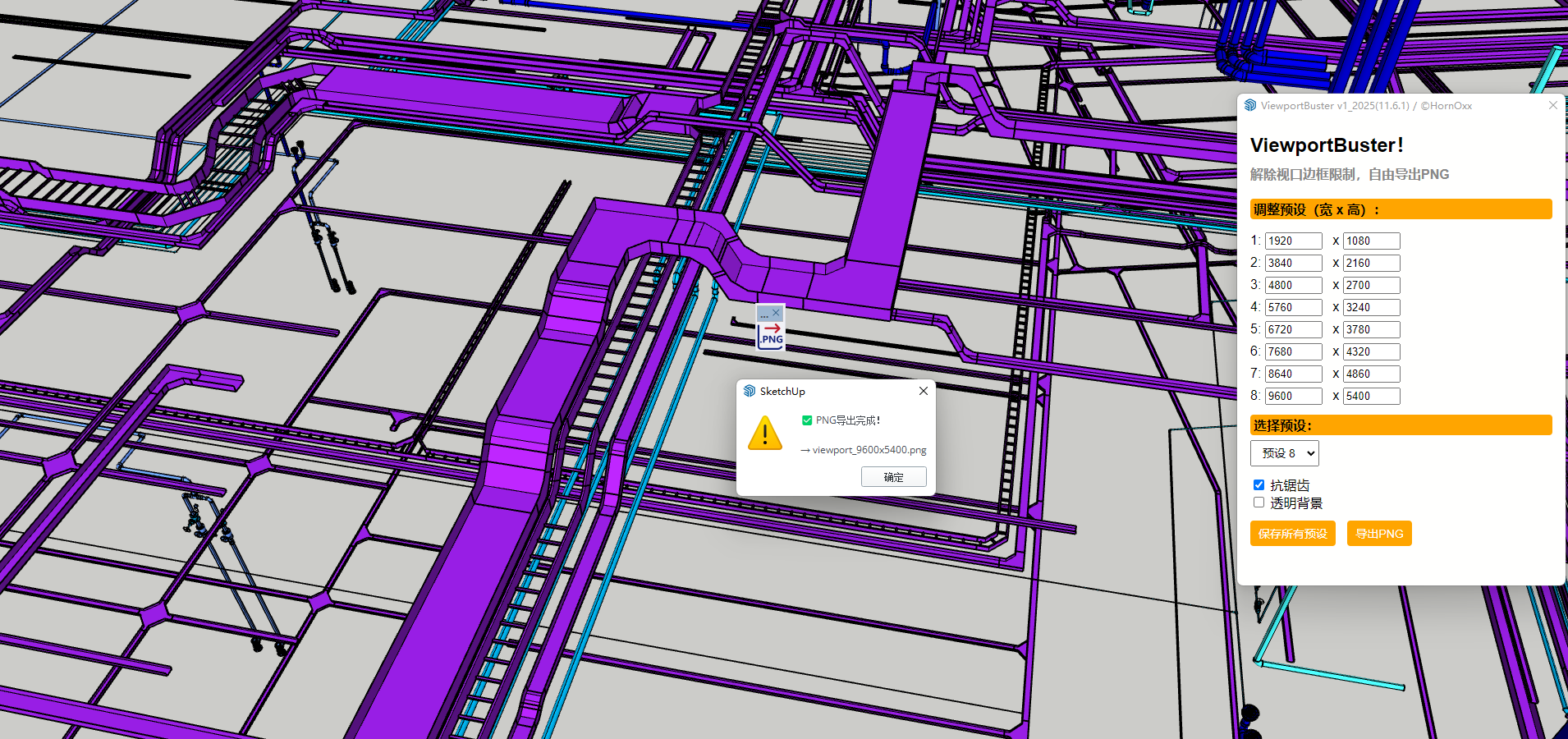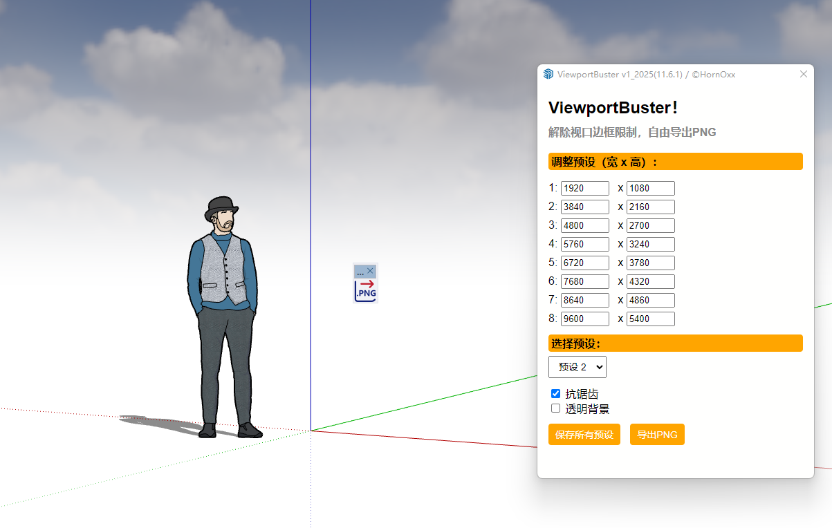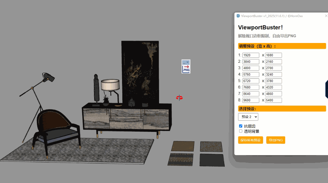 ViewportBuster(PNG 导出器)彻底释放您的 PNG 导出功能,可以导出任意大小尺寸的大图!
