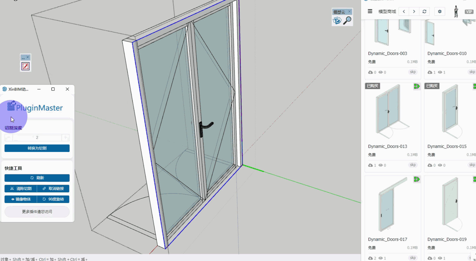 请您认真观看视频的操作,搭配本站的模型云插件可以搜索任意的动态组件的门窗,模型云中内置上百万的免费模型供您免费下载选择。