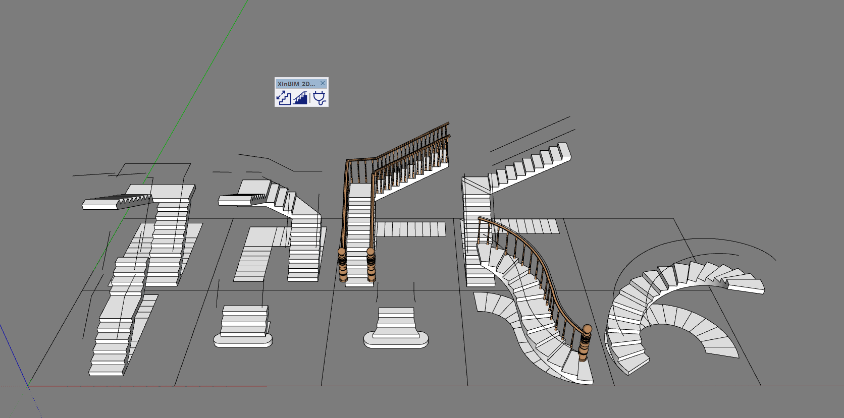 本插件采用极简设计,小插件大用处,可以将直跑,剪刀,旋转等的2D平面楼梯直接转换为3D的楼梯,并且自动生成扶手,可自定义方向,休息平台标记,楼梯踏步高度等。如果您有DIY的精神,可以在插件目录下的model下将扶手的样式自行替换成您所需的风格。