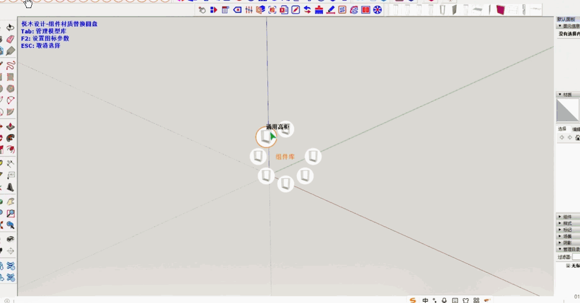 悦木魔方库插件主要的特色是具有组件和材质替换圆盘的功能,把您常用组件和材质文件夹加入到圆盘中,设置快捷键更方便调用组件和材质替换,有效提升作图效率,堪称设计师利器!真正做到圆盘在手作图无忧