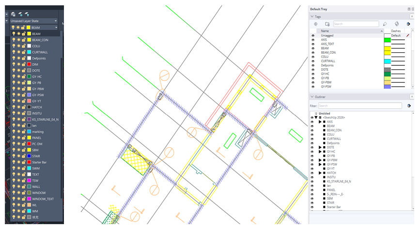• LayOut 和 SketchUp 视口导出的标签保留:现在SketchUp标签(图层)支持转换为DWG图层。