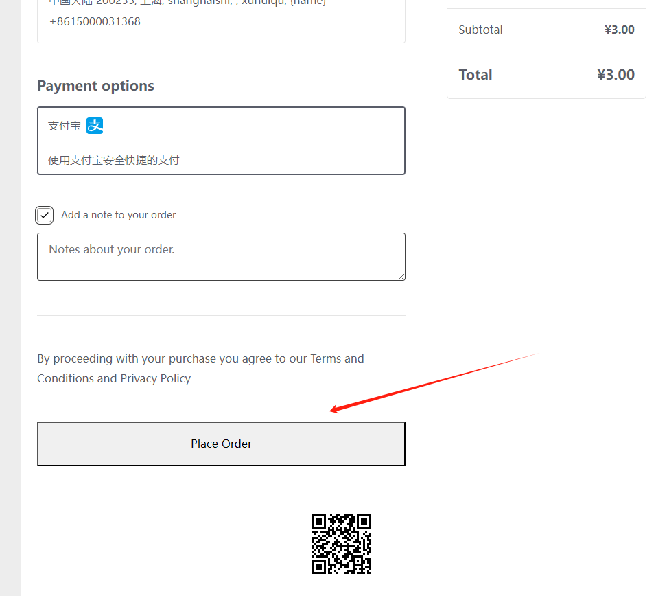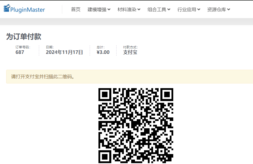 6、打开支付宝扫描二维码即可支付,支付成功后将会收到订单系统提示。